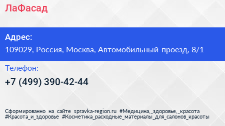 ЛаФасад по адресу 109029, Россия, Москва, Автомобильный проезд, 8/1 в дальнейшем Организация, размещена в следующих категориях: