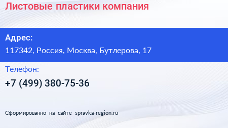 Листовые пластики, компания по адресу 117342, Россия, Москва, Бутлерова, 17 в дальнейшем Организация, размещена в следующих категориях: