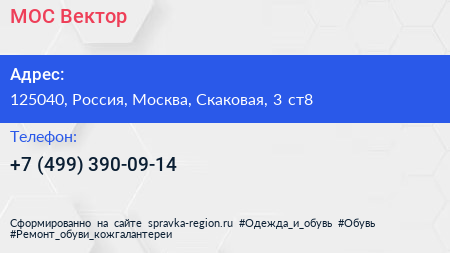 МОС Вектор по адресу 125040, Россия, Москва, Скаковая, 3 ст8 в дальнейшем Организация, размещена в следующих категориях: