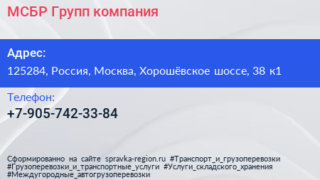МСБР Групп, компания по адресу 125284, Россия, Москва, Хорошёвское шоссе, 38 к1 в дальнейшем Организация, размещена в следующих категориях:
