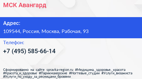МСК-Авангард по адресу 109544, Россия, Москва, Рабочая, 93 в дальнейшем Организация, размещена в следующих категориях: