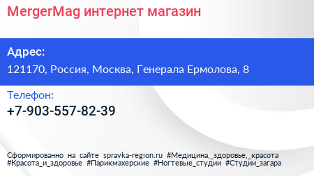MergerMag, интернет-магазин по адресу 121170, Россия, Москва, Генерала Ермолова, 8 в дальнейшем Организация, размещена в следующих категориях: