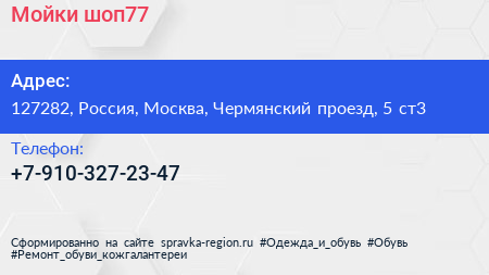Мойки-шоп77 по адресу 127282, Россия, Москва, Чермянский проезд, 5 ст3 в дальнейшем Организация, размещена в следующих категориях: