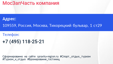 МосЗапЧасть, компания по адресу 109559, Россия, Москва, Тихорецкий бульвар, 1 ст29 в дальнейшем Организация, размещена в следующих категориях: