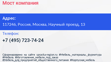 Мост, компания по адресу 117246, Россия, Москва, Научный проезд, 13 в дальнейшем Организация, размещена в следующих категориях: