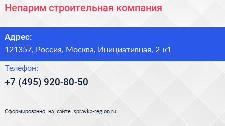 Непарим, строительная компания по адресу 121357, Россия, Москва, Инициативная, 2 к1 в дальнейшем Организация, размещена в следующих категориях: