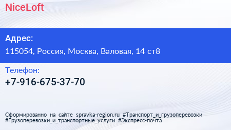 NiceLoft по адресу 115054, Россия, Москва, Валовая, 14 ст8 в дальнейшем Организация, размещена в следующих категориях: