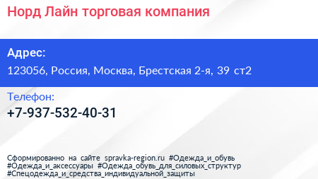 Норд-Лайн, торговая компания по адресу 123056, Россия, Москва, Брестская 2-я, 39 ст2 в дальнейшем Организация, размещена в следующих категориях: