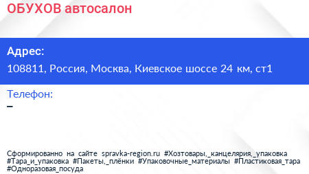 ОБУХОВ, автосалон по адресу 108811, Россия, Москва, Киевское шоссе 24 км, ст1 в дальнейшем Организация, размещена в следующих категориях: