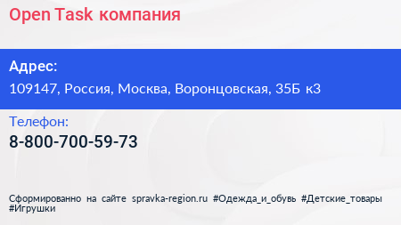 Open-Task, компания по адресу 109147, Россия, Москва, Воронцовская, 35Б к3 в дальнейшем Организация, размещена в следующих категориях: