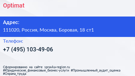 Optimat по адресу 111020, Россия, Москва, Боровая, 18 ст1 в дальнейшем Организация, размещена в следующих категориях: