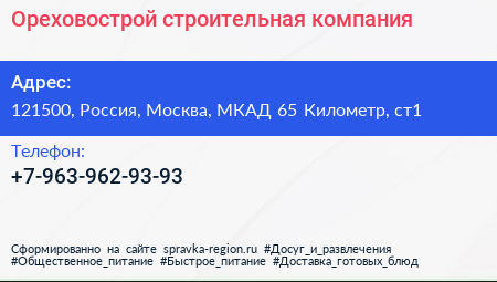 Ореховострой, строительная компания по адресу 121500, Россия, Москва, МКАД 65 Километр, ст1 в дальнейшем Организация, размещена в следующих категориях: