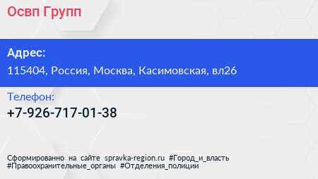 Освп Групп по адресу 115404, Россия, Москва, Касимовская, вл26 в дальнейшем Организация, размещена в следующих категориях: