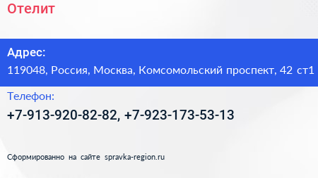 Отелит по адресу 119048, Россия, Москва, Комсомольский проспект, 42 ст1 в дальнейшем Организация, размещена в следующих категориях: