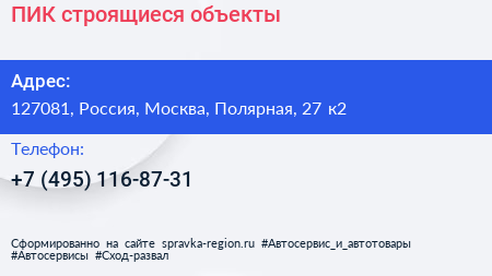 ПИК, строящиеся объекты по адресу 127081, Россия, Москва, Полярная, 27 к2 в дальнейшем Организация, размещена в следующих категориях: