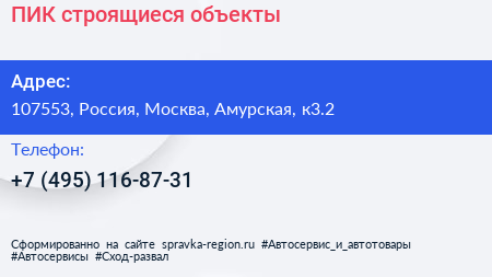 ПИК, строящиеся объекты по адресу 107553, Россия, Москва, Амурская, к3.2 в дальнейшем Организация, размещена в следующих категориях: