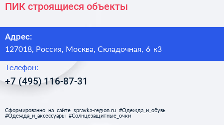 ПИК, строящиеся объекты по адресу 127018, Россия, Москва, Складочная, 6 к3 в дальнейшем Организация, размещена в следующих категориях: