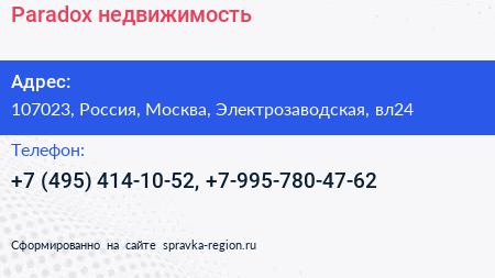 Paradox недвижимость по адресу 107023, Россия, Москва, Электрозаводская, вл24 в дальнейшем Организация, размещена в следующих категориях: