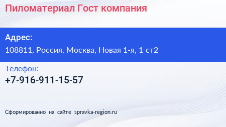 Пиломатериал-Гост, компания по адресу 108811, Россия, Москва, Новая 1-я, 1 ст2 в дальнейшем Организация, размещена в следующих категориях: