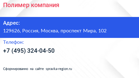 Полимер, компания по адресу 129626, Россия, Москва, проспект Мира, 102 в дальнейшем Организация, размещена в следующих категориях: