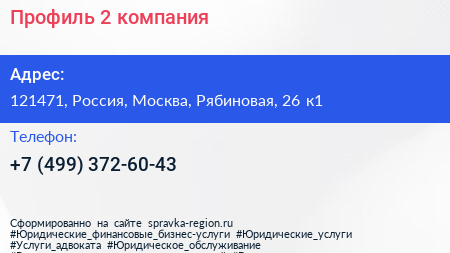 Профиль-2, компания по адресу 121471, Россия, Москва, Рябиновая, 26 к1 в дальнейшем Организация, размещена в следующих категориях: