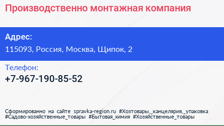 Производственно-монтажная компания по адресу 115093, Россия, Москва, Щипок, 2 в дальнейшем Организация, размещена в следующих категориях: