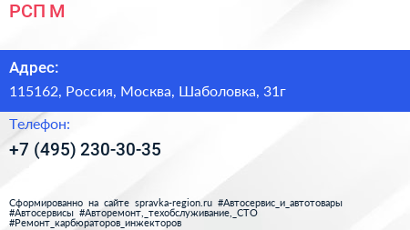 РСП-М по адресу 115162, Россия, Москва, Шаболовка, 31г в дальнейшем Организация, размещена в следующих категориях: