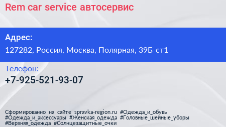 Rem car service, автосервис по адресу 127282, Россия, Москва, Полярная, 39Б ст1 в дальнейшем Организация, размещена в следующих категориях:
