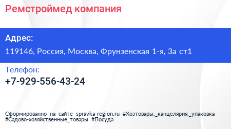Ремстроймед, компания по адресу 119146, Россия, Москва, Фрунзенская 1-я, 3а ст1 в дальнейшем Организация, размещена в следующих категориях: