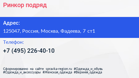 Ринкор-подряд по адресу 125047, Россия, Москва, Фадеева, 7 ст1 в дальнейшем Организация, размещена в следующих категориях: