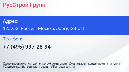 РусСтрой Групп по адресу 125252, Россия, Москва, Зорге, 28 ст1 в дальнейшем Организация, размещена в следующих категориях: