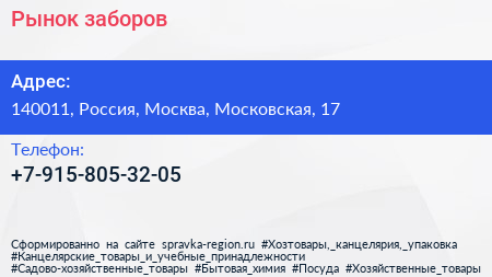 Рынок заборов по адресу 140011, Россия, Москва, Московская, 17 в дальнейшем Организация, размещена в следующих категориях: