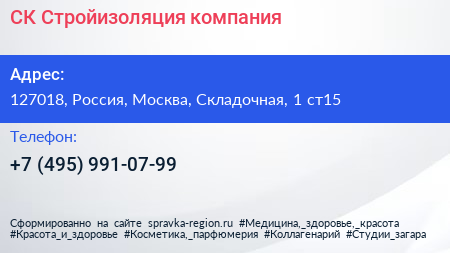 СК Стройизоляция, компания по адресу 127018, Россия, Москва, Складочная, 1 ст15 в дальнейшем Организация, размещена в следующих категориях: