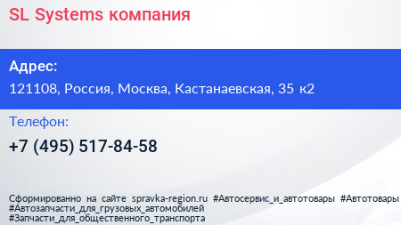 SL Systems, компания по адресу 121108, Россия, Москва, Кастанаевская, 35 к2 в дальнейшем Организация, размещена в следующих категориях:
