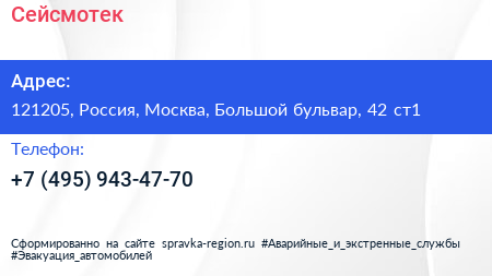 Сейсмотек по адресу 121205, Россия, Москва, Большой бульвар, 42 ст1 в дальнейшем Организация, размещена в следующих категориях: