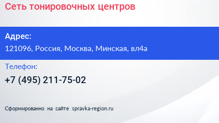 Сеть тонировочных центров по адресу 121096, Россия, Москва, Минская, вл4а в дальнейшем Организация, размещена в следующих категориях: