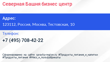 Северная Башня, бизнес-центр по адресу 123112, Россия, Москва, Тестовская, 10 в дальнейшем Организация, размещена в следующих категориях: