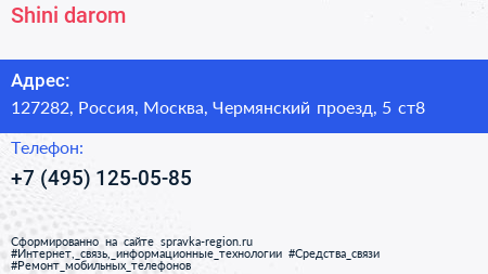 Shini-darom по адресу 127282, Россия, Москва, Чермянский проезд, 5 ст8 в дальнейшем Организация, размещена в следующих категориях: