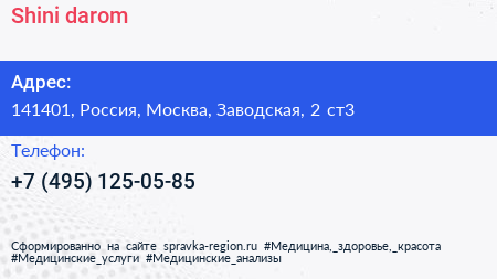 Shini-darom по адресу 141401, Россия, Москва, Заводская, 2 ст3 в дальнейшем Организация, размещена в следующих категориях: