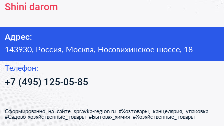 Shini-darom по адресу 143930, Россия, Москва, Носовихинское шоссе, 18 в дальнейшем Организация, размещена в следующих категориях: