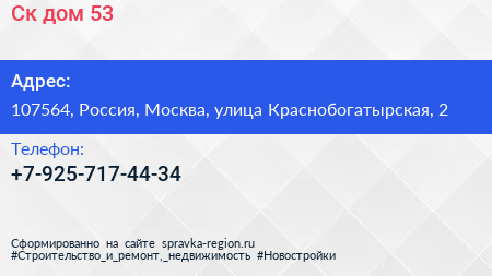 Ск-дом 53 по адресу 107564, Россия, Москва, улица Краснобогатырская, 2 в дальнейшем Организация, размещена в следующих категориях: