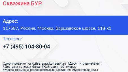 Для связи с организацией воспользуйтесь номером телефона: +7 (495) 104-80-04. Ежедневно с 09:00 до 20:00. по предварительному звонку: пн-вс, вы можете обратиться в эту организацию.