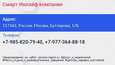 Смарт Инлайф, компания по адресу 117342, Россия, Москва, Бутлерова, 17Б в дальнейшем Организация, размещена в следующих категориях: