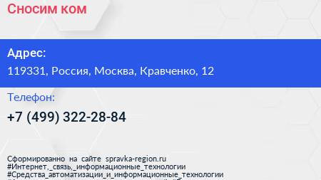 Сносим.ком по адресу 119331, Россия, Москва, Кравченко, 12 в дальнейшем Организация, размещена в следующих категориях: