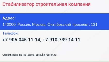 Стабилизатор, строительная компания по адресу 140000, Россия, Москва, Октябрьский проспект, 131 в дальнейшем Организация, размещена в следующих категориях: