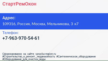 СтартРемОкон по адресу 109316, Россия, Москва, Мельникова, 3 к7 в дальнейшем Организация, размещена в следующих категориях: