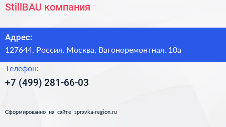 StillBAU, компания по адресу 127644, Россия, Москва, Вагоноремонтная, 10а в дальнейшем Организация, размещена в следующих категориях:
