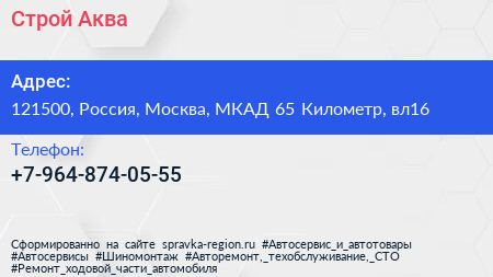 Строй-Аква по адресу 121500, Россия, Москва, МКАД 65 Километр, вл16 в дальнейшем Организация, размещена в следующих категориях: