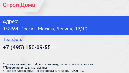 Строй-Дома по адресу 143964, Россия, Москва, Ленина, 19/10 в дальнейшем Организация, размещена в следующих категориях: