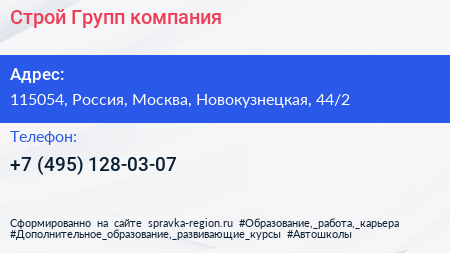 Строй Групп, компания по адресу 115054, Россия, Москва, Новокузнецкая, 44/2 в дальнейшем Организация, размещена в следующих категориях:
